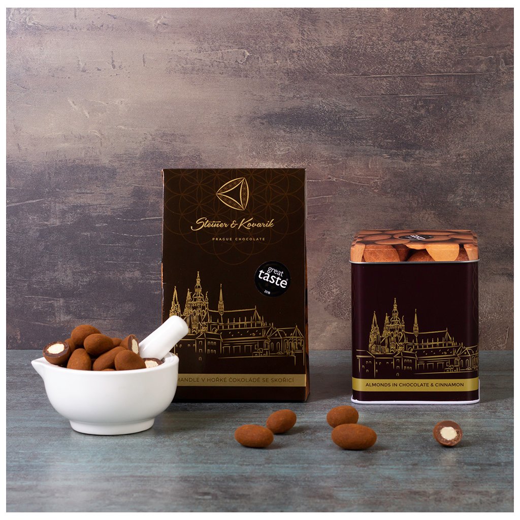 Ty nejlepší španělské mandle jsme pro vás obalili poctivou kvalitní hořkou čokoládou a přidali skvělou cejlonskou skořici. Chuťový zážitek, který byste měli určitě vyzkoušet. Tyto mandle v čokoládě se skořicí získali u náročných porotců na londýnském Great Taste ocenění.