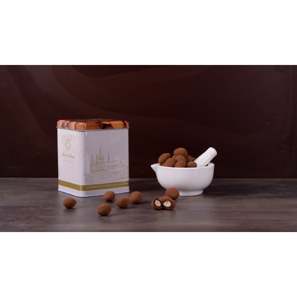 Nasucho pražené španělské mandle 🌞🌰 v desítkách mikrovrstev mléčné čokolády a cejlonské skořici. Bestseller naší značky, oceněný na londýnském Great Taste Award. Lahodná a omamná kombinace, která okouzlí každého.