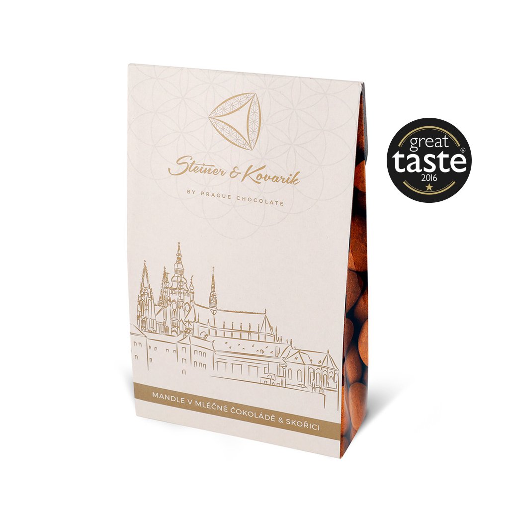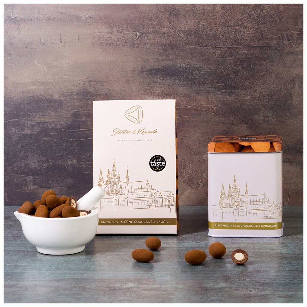 Nasucho pražené španělské mandle 🌞🌰 v desítkách mikrovrstev mléčné čokolády a cejlonské skořici. Bestseller naší značky, oceněný na londýnském Great Taste Award. Lahodná a omamná kombinace, která okouzlí každého.
