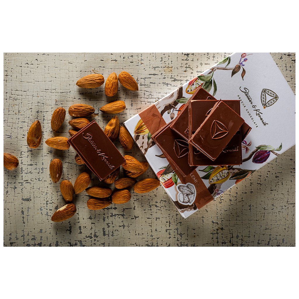 Udržitelnost planety je pro nás velmi důležité téma a proto hledáme nové cesty i v čokoládovém světě. Tato 55% bean to bar čokoláda neobsahuje žádné mléko, její jemnosti a plné smetanové chuti jsme dosáhli přidáním mandlí. Je vhodná i pro vegany.
