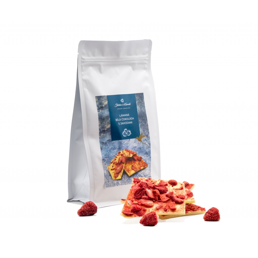 Lámaná bílá čokoláda s lyofilizovanými jahodami, 300g