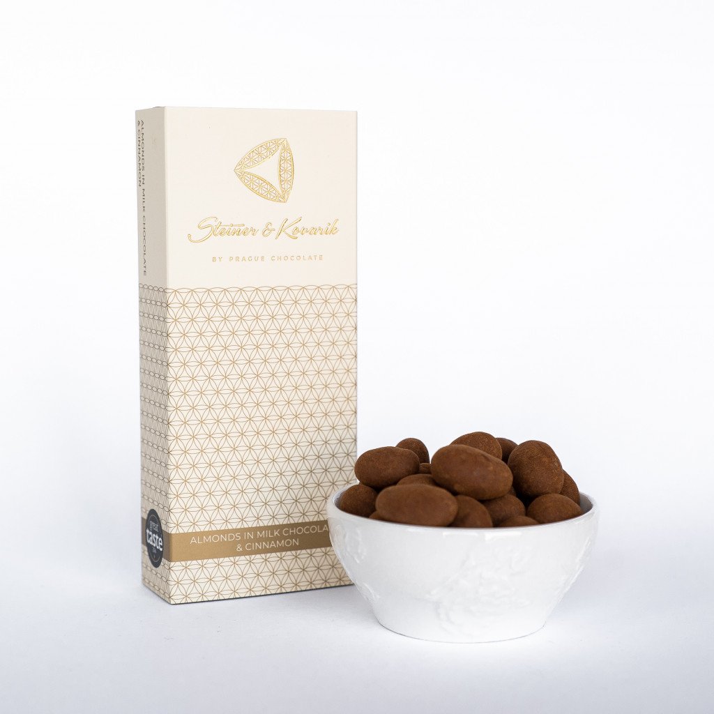 milk chocolate (min. 70 %): cocoa solids content at least 35 % (sugar, cocoa butter, milk powder, cocoa beans, emulsifier: sunflower lecithin, aroma: natural vanilla), roasted almonds (min. 17 %), Ceylon cinnamon (min. 0.7 %). May contain peanuts, egg, soy and nuts. Store in a cool and dry place. Handmade in the Czech Republic.