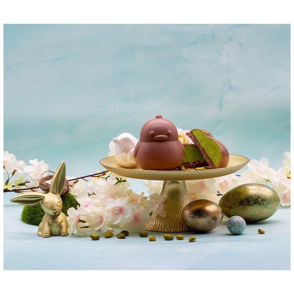 We have news for you! A cute chocolate chick made of fine milk chocolate hides a delicious pistachio and white chocolate cream. Joy in every bite - the perfect gift for your Easter basket!