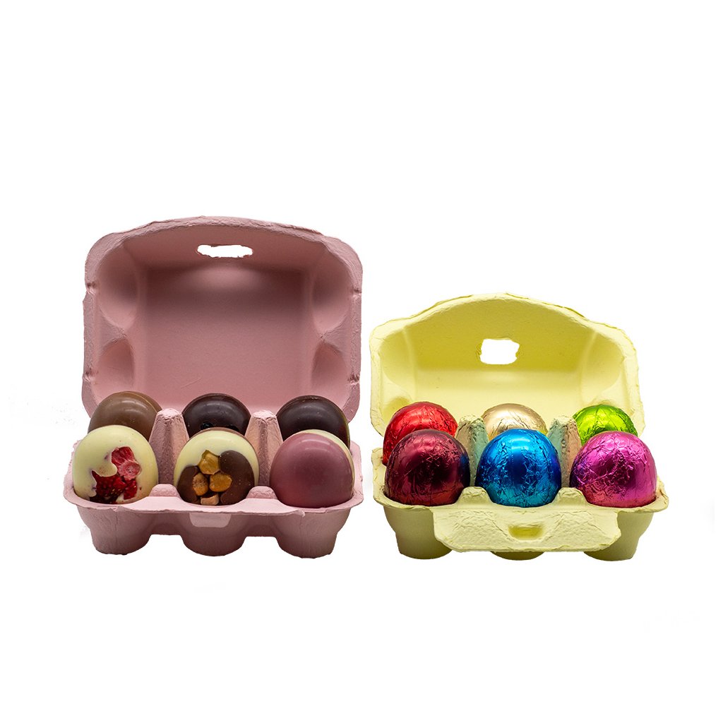 Green – 1/2 White chocolate with strawberries, 1/2 Milk chocolate with almonds