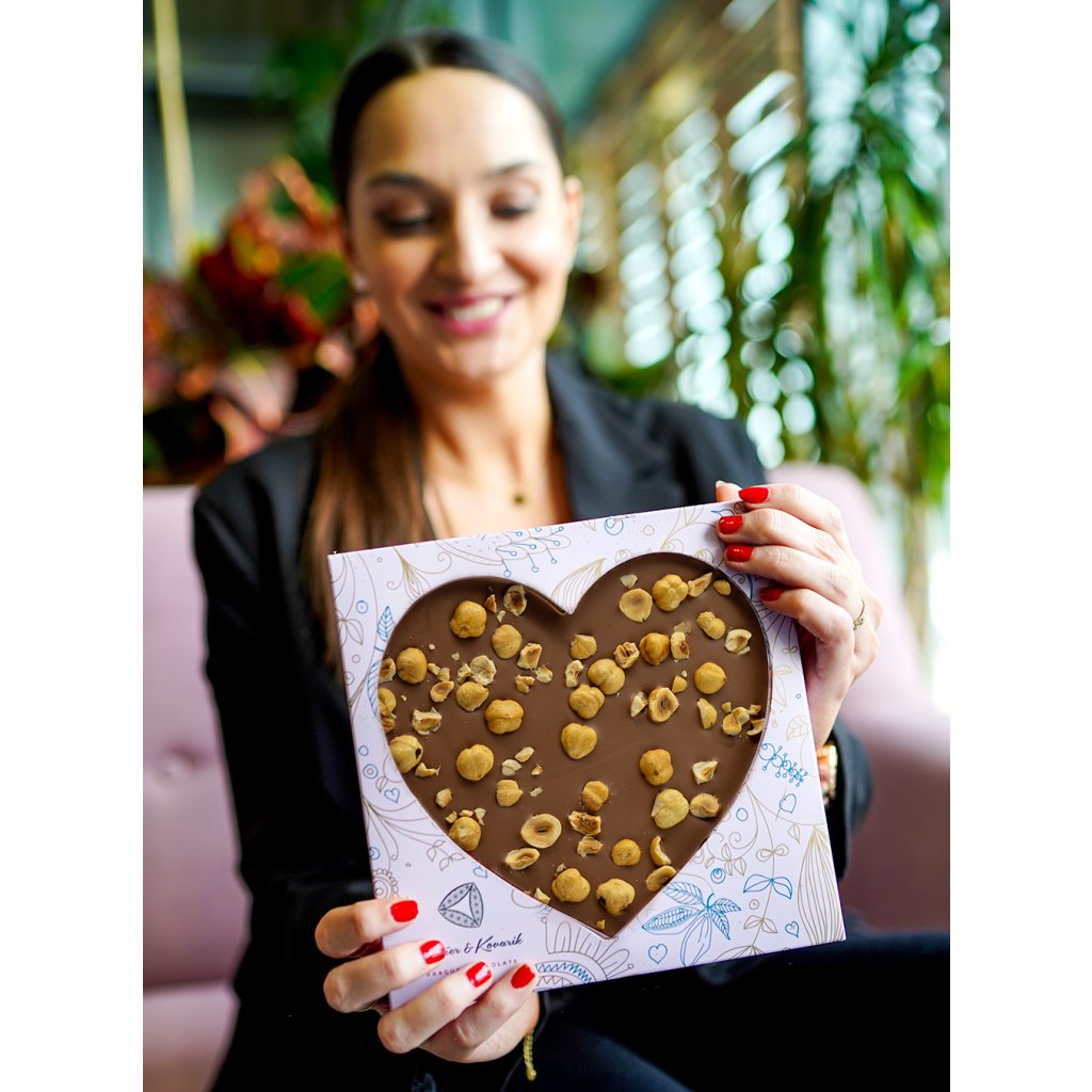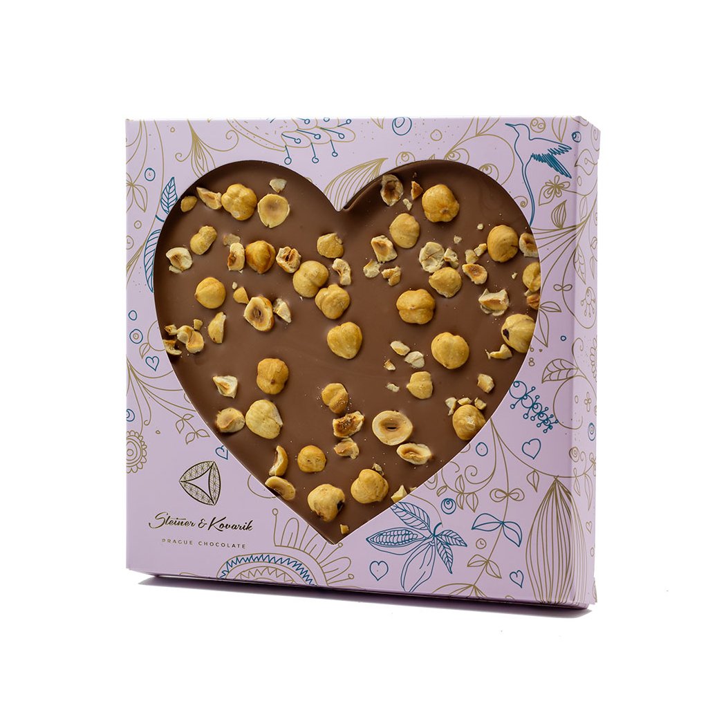 Small milk chocolate heart with Piemonte hazelnuts, 200g