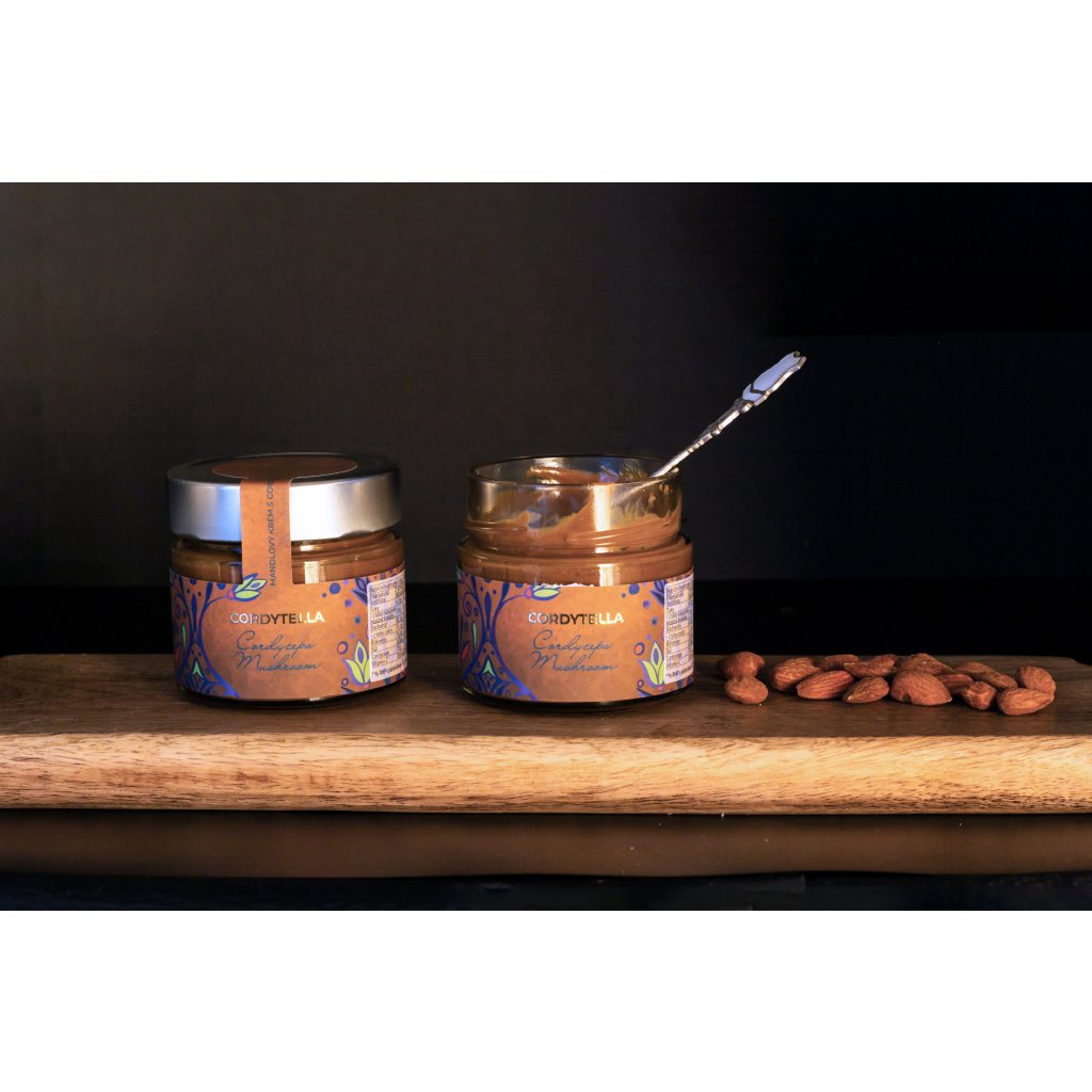 roasted almonds 65%, coconut sugar, cordyceps 10%, coconut powder (coconut pulp, tapioca starch, acacia fiber), guarana, acerola 1%. May contain dry nuts and peanuts. Keep cool and dry. Handmade in the Czech Republic.