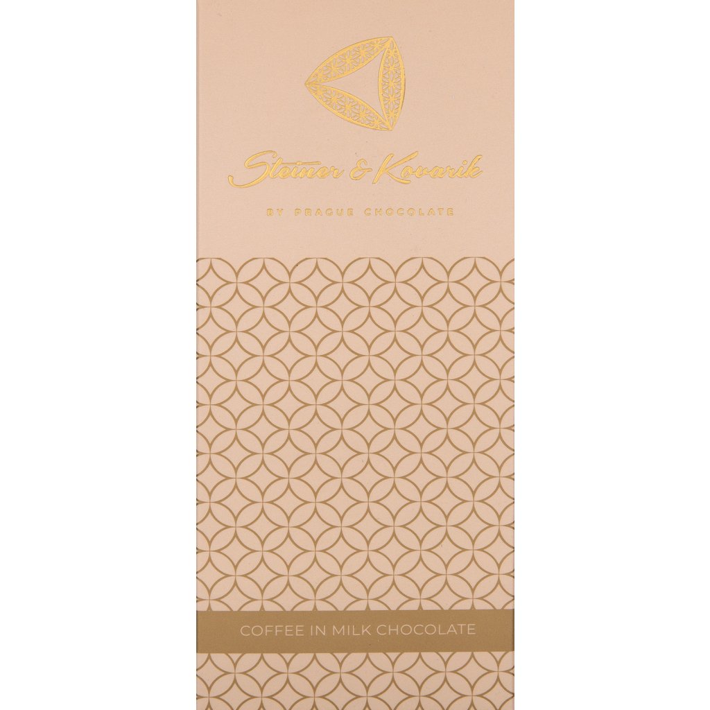 Mléčná čokoláda (min. 80 %): obsah kakaové sušiny nejméně 35 % (cukr, kakaové máslo, sušené mléko, kakaové boby, emulgátor: slunečnicový lecitin, aroma: přírodní vanilka), káva pražená (min. 16 %), kakaový prášek (min. 0,7 %). Může obsahovat arašídy, lepek, vejce a suché skořápkové plody. Uchovejte v chladu a suchu. Vyrobeno ručně v České republice.