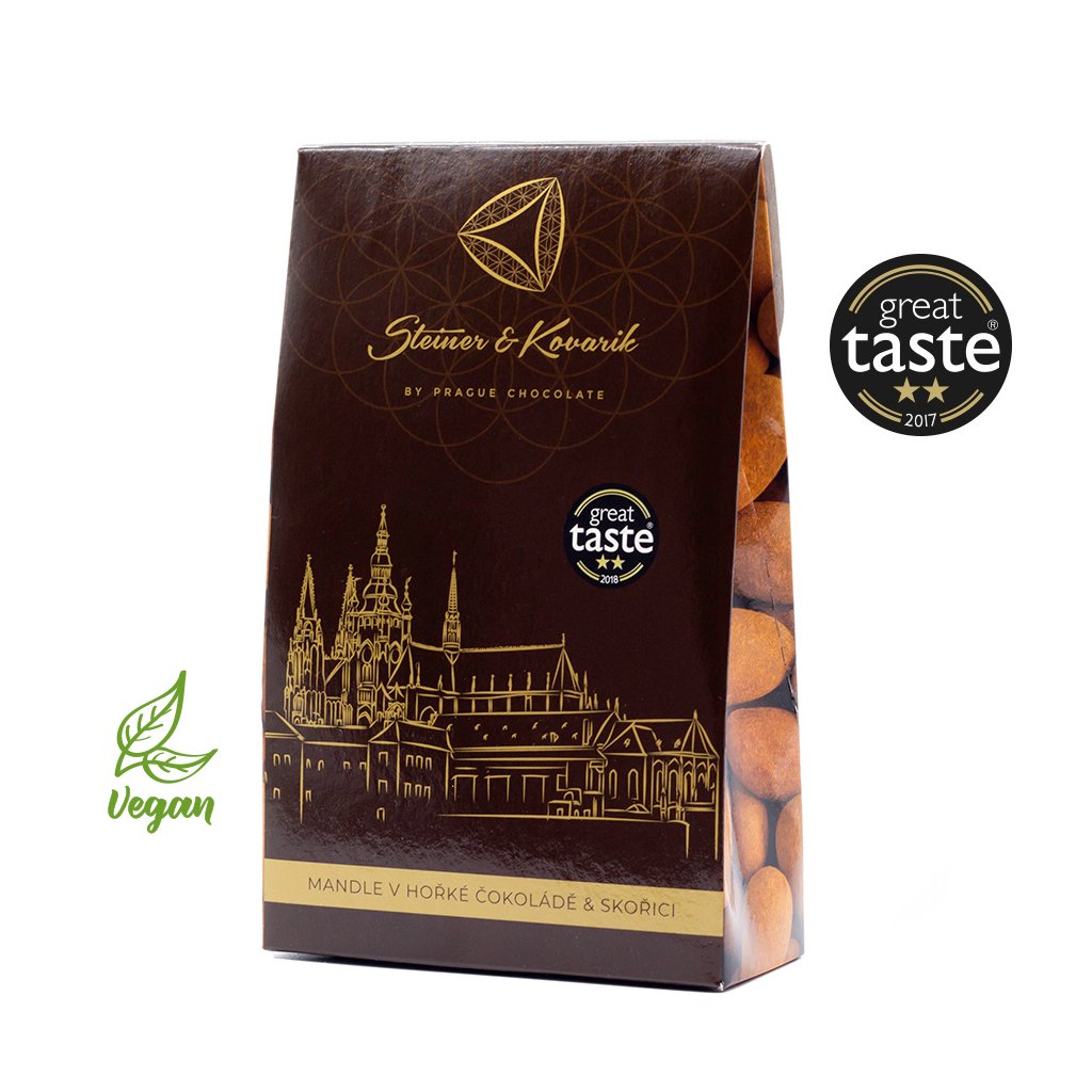 Ty nejlepší španělské mandle jsme pro vás obalili poctivou kvalitní hořkou čokoládou a přidali skvělou cejlonskou skořici. Chuťový zážitek, který byste měli určitě vyzkoušet. Tyto mandle v čokoládě se skořicí získali u náročných porotců na londýnském Great Taste ocenění.