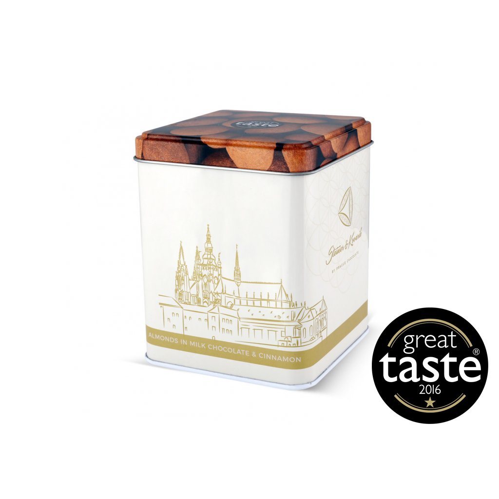 Nasucho pražené španělské mandle 🌞🌰 v desítkách mikrovrstev mléčné čokolády a cejlonské skořici. Bestseller naší značky, oceněný na londýnském Great Taste Award. Lahodná a omamná kombinace, která okouzlí každého.