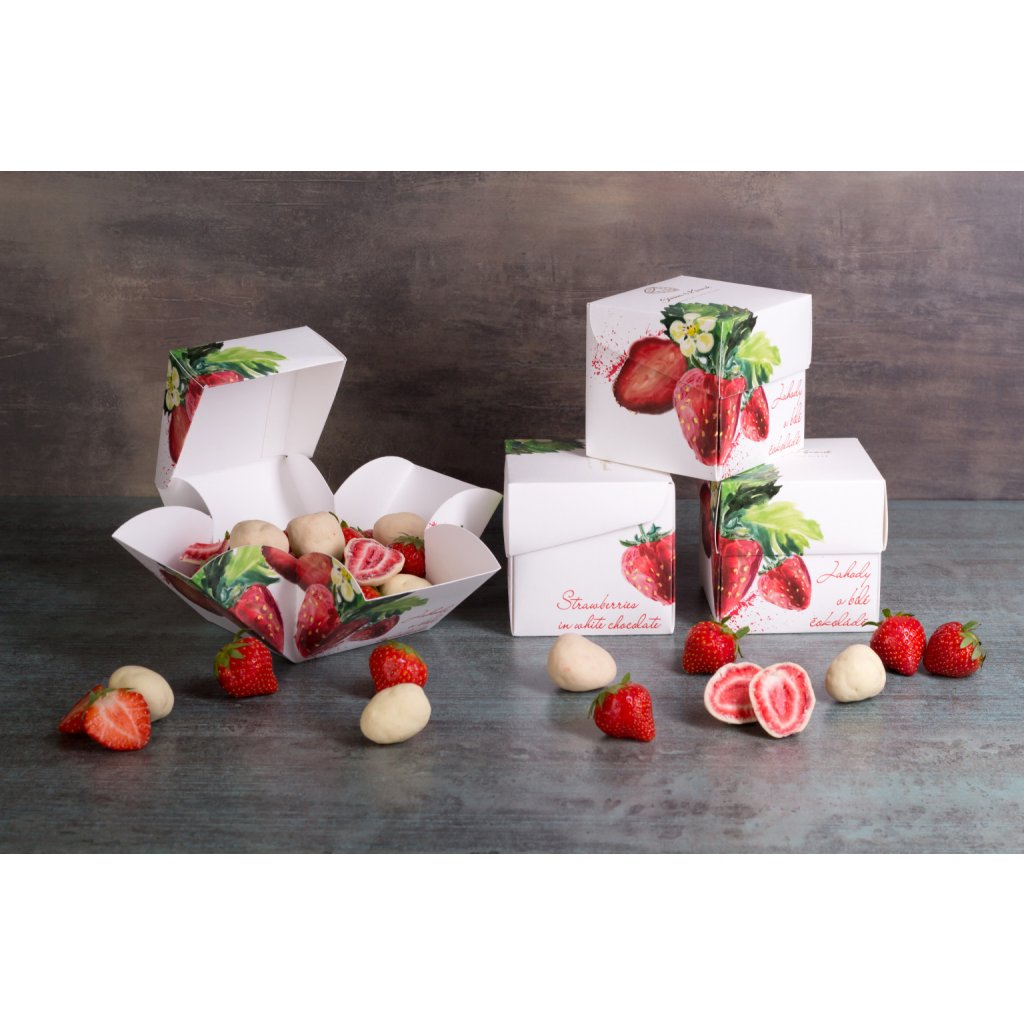 Mrazem sušené křupavé jahody ukryté v jemné delikátní čokoládě, to je dokonalý zážitek nejen pro milovníky čokolády a ovoce. Krémové na povrchu a smyslně podmanivé uvnitř, tyto lehké a zdravé delikatesy budou ve vašich ústech zvolna tát a připravovat vaše chuťové pohárky na osvěžující a slastné ovocné opojení.