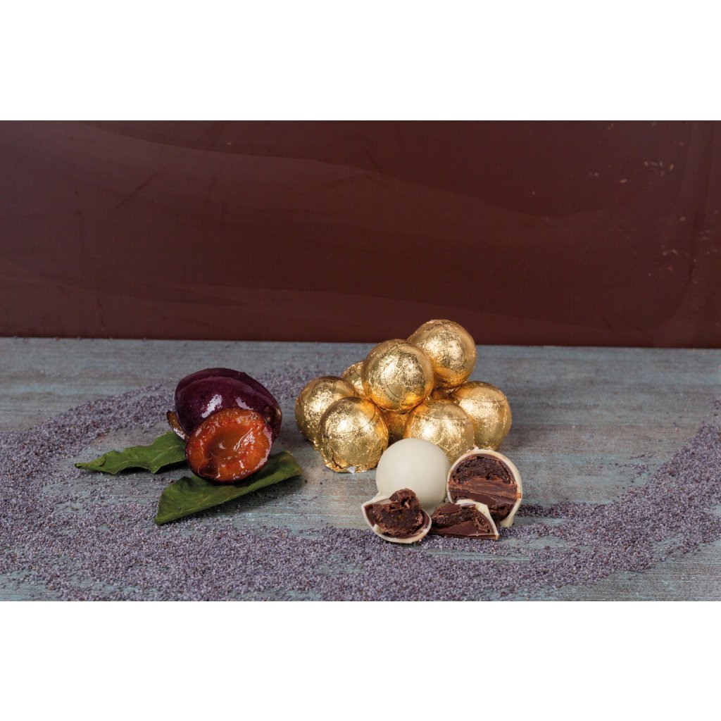 Směs bílé a hořké čokolády vyzdvihuje vůně a chutě tradičních českých ingrediencí jako je Tuzemák, švestky a mák. Tato velmi luxusní a delikátní cukrovinka je připravená dle originálního a tradičního receptu.