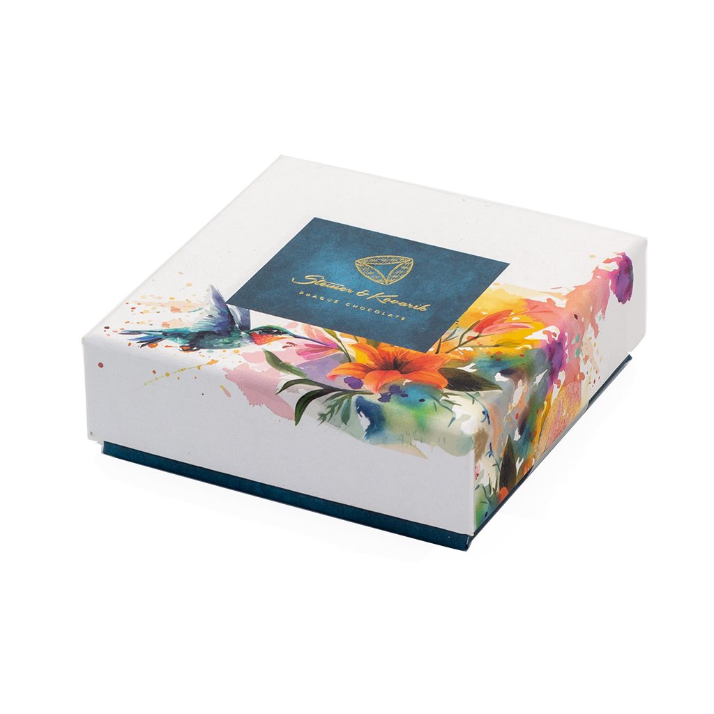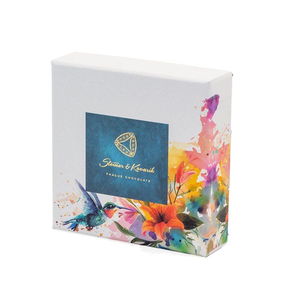 Z nejlepší čokolády a vybraných chutí jsme pro Vás vytvořili něco opravdu unikátního. Krabičku čtyř kusů výběrových pralinek naplněných těmi nejlepšími ingrediencemi. Vznikla tak kolekce chutí a vůni, která je nejen vhodná na mlsání, ale díky kouzelnému balení i jako krásný dárek.