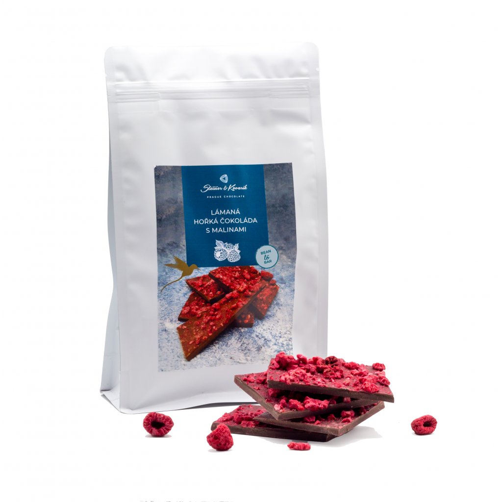 Lámaná hořká čokoláda s lyofilizovanými malinami, 300g
